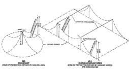 Zone of protection defined by ground wire(s)