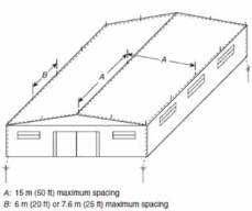 B: 6 m (20 ft) or7,6 m (25 ft) maximum spacing.