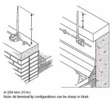 Air terminals on flat and gently sloping roof [1].