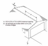 B: Air terminals are located within 0,6 m (2 ft) of
